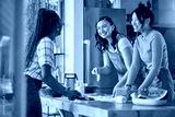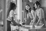 Friends, smile and women cooking pizza in kitchen, bonding and having fun together in home. Happy, girls and baking food, margherita and salami bread at lunch, cheese on meat and brunch in house