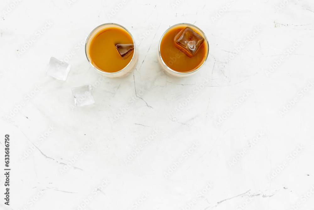Two glasses of cold latte coffee with ice. Summer coffee drink