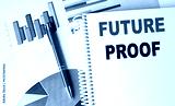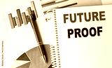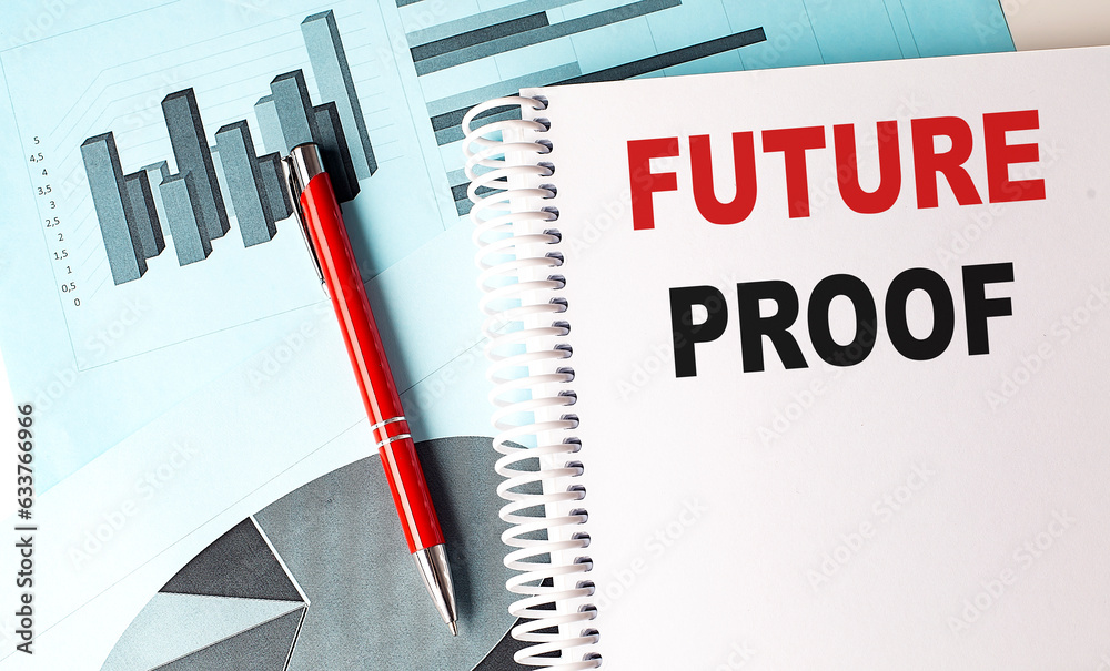 FUTURE PROOF text on a notebook with pen on a chart background