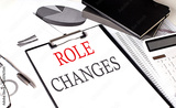 ROLE CHANGES text on paper clipboard with chart and notebook on withe background