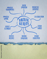 virtual reality infographics or mind map sketch on art paper, technology concept