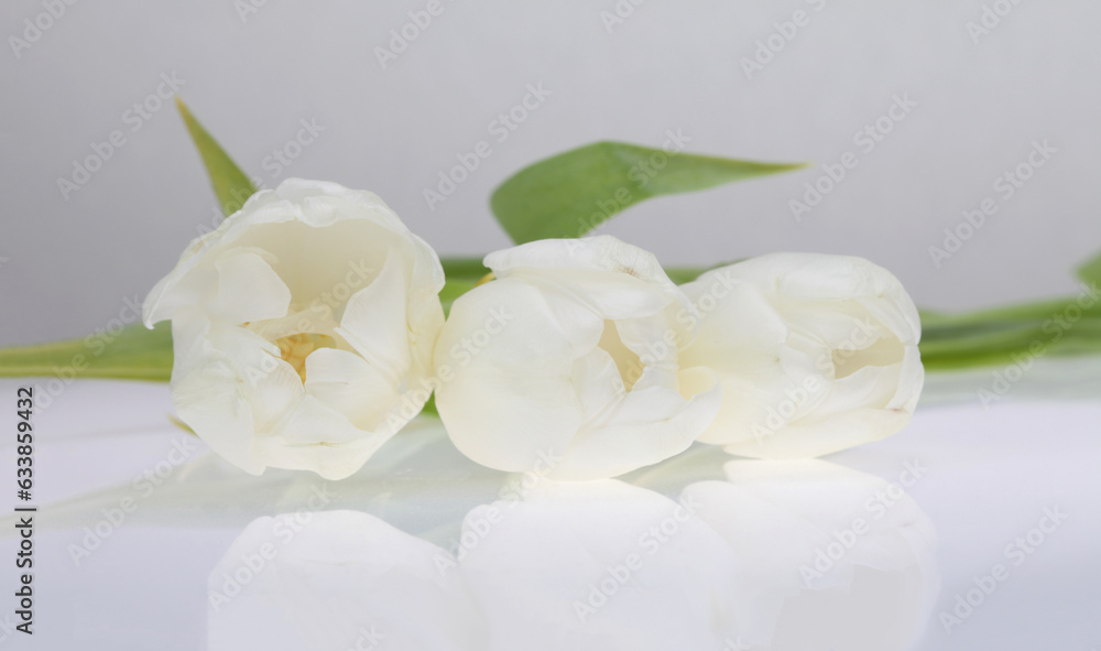 White Tulip flower on light background.