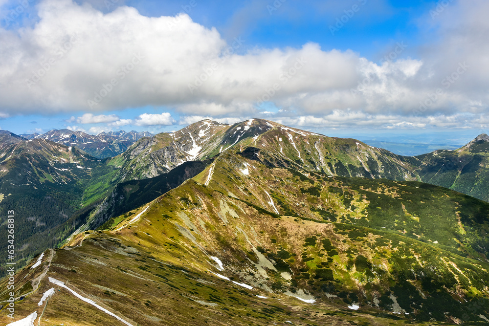 panorama of the Tatra Mountains from Kasprowy Wierch, beautiful mountain landscape