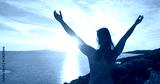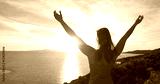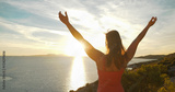 LENS FLARE, CLOSE UP: Attractive lady embraces gorgeous golden sunrise on Hvar