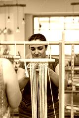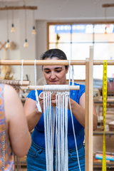 Middle aged woman making macrame in a workshop