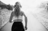 Woman running in the morning with earphones music motivation