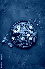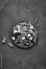 Beetroot Salad with Blue Cheese, Nuts and Salad Mix over Dark Background