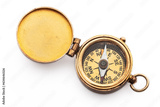 Compass old vintage brass nautical compass isolated on white background