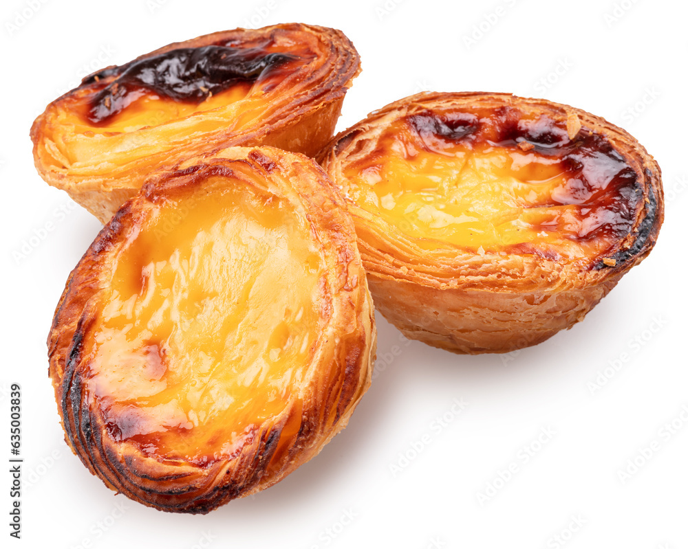 Pastel de nata tarts isolated on white background. File contains clipping path.