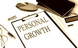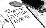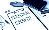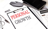 PERSONAL GROWTH text on paper clipboard with chart and notebook on withe background