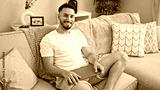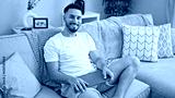 Young arab man holding laptop sitting on sofa at home