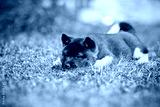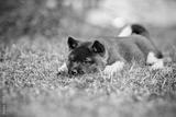 adorable akita puppy lying down