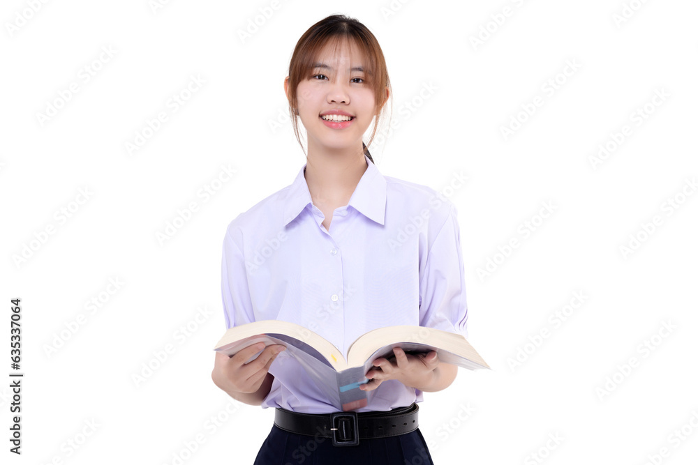 Asian teen Thai student girl with school uniform. PNG file format, Transparent background.
