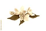 Pink flowers and green leaves of Malus floribunda (profusely flowering apple) in a spring floral arrangement isolated on white or transparent background