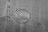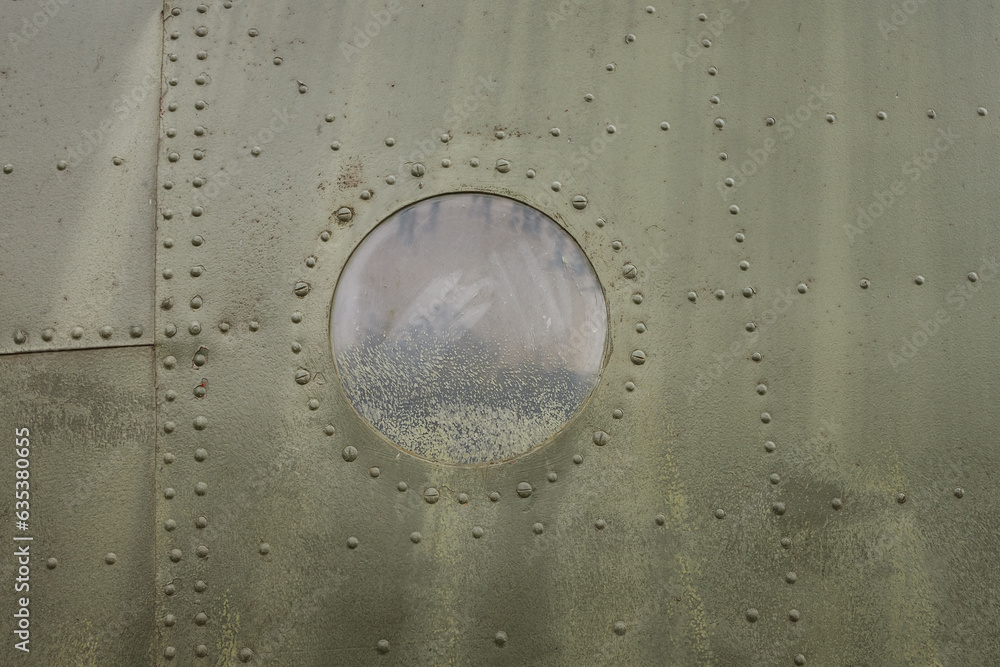 Details of the fuselage of an old aircraft. Old camouflage surface on a military aircraft