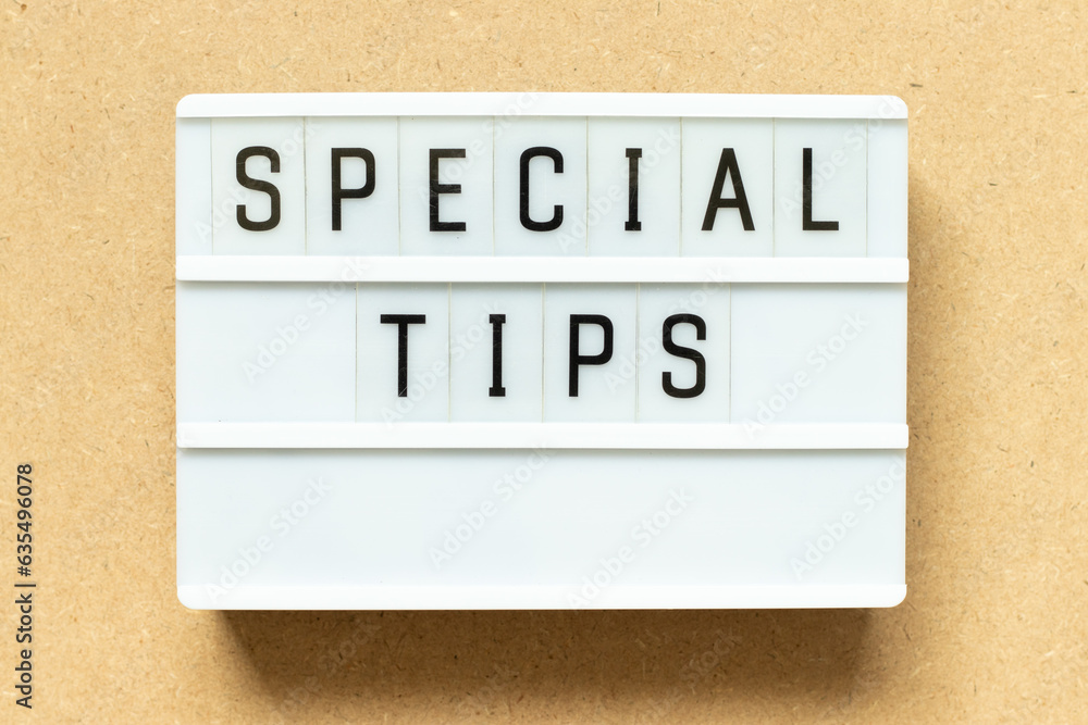 Lightbox with word special tips on wood background