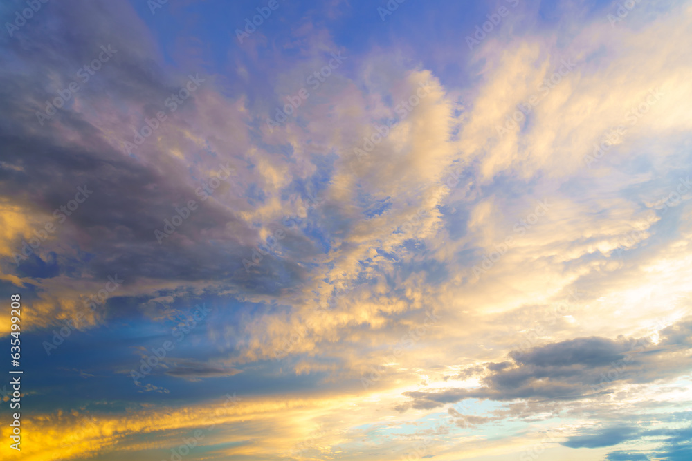 Dramatic cloudy sunset or dawn sky. Natural background.