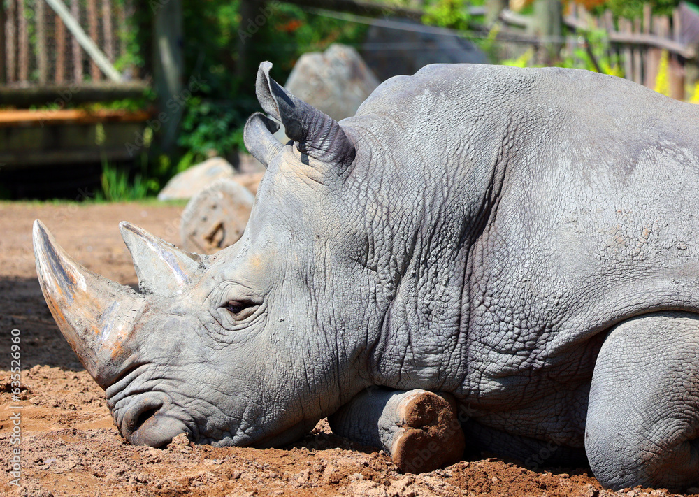 The white rhinoceros or square-lipped rhinoceros is the largest extant species of rhinoceros. It has a wide mouth used for grazing and is the most social of all rhino species
