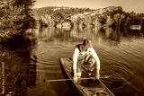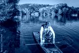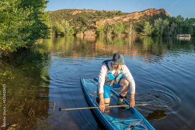 senior male is paddling a stand up paddleboard, Horsetooth Reservoir near Fort Collins, Colorado, in summer scenery