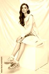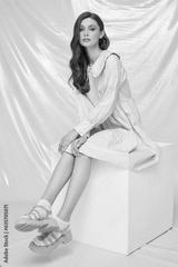 Young fashion woman in pink trendy collared dress.