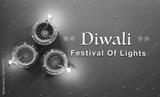 Happy Diwali - Clay Diya lamps lit during Diwali, Hindu festival of lights celebration. Colorful traditional oil lamp diya on blue background