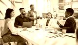 Business people, manager presentation and planning, teamwork or discussion for project proposal or marketing. Professional boss and group of men and women talking, questions and design collaboration
