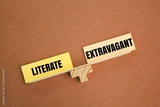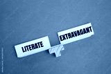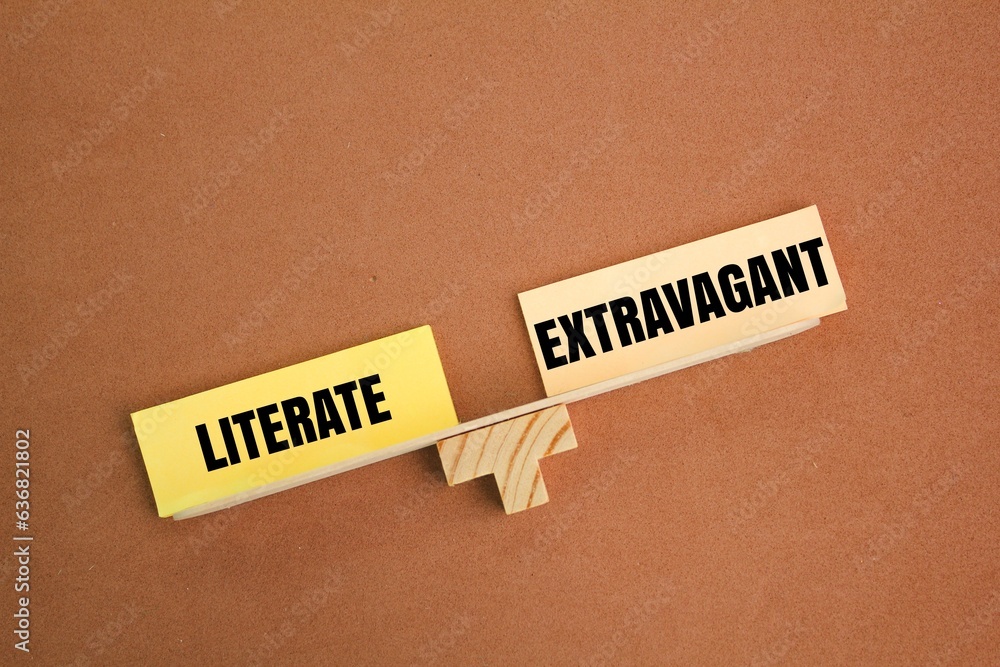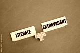 the concept of balance with the word between extravagant and literate. financial crisis concept. saving money. the concept of education itself. the concept of extravagant spending.