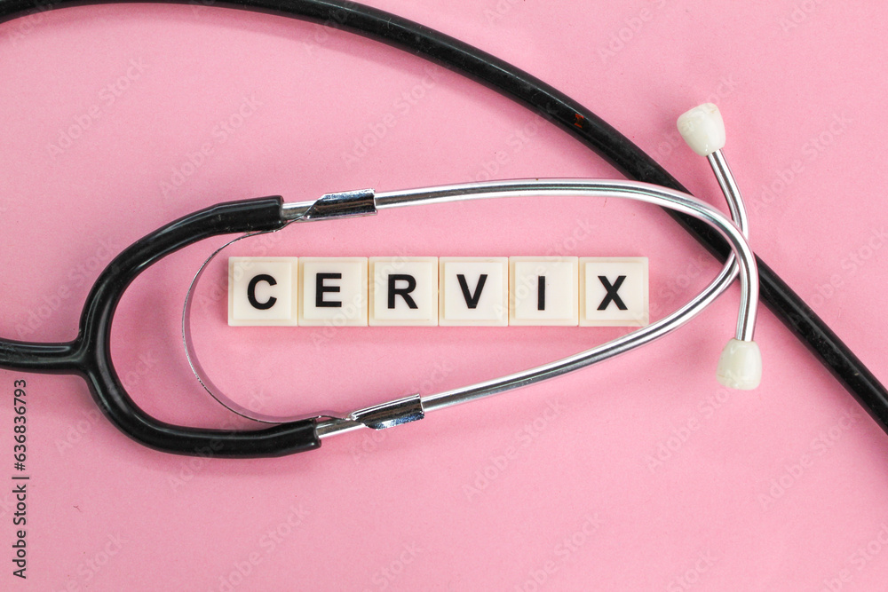 stethoscope with the word cervix. concept of women's disease and medicine. female cancer concept