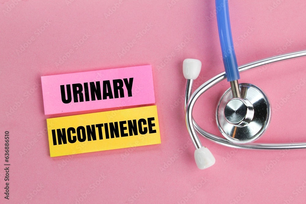stethoscope and colored paper with the word Urinary incontinence. concept of female internal organs and diseases. concept of disease and medicine