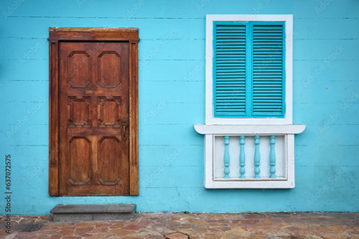 Street view of a colorful facade, architecture background, Guayaquil, Ecuador.