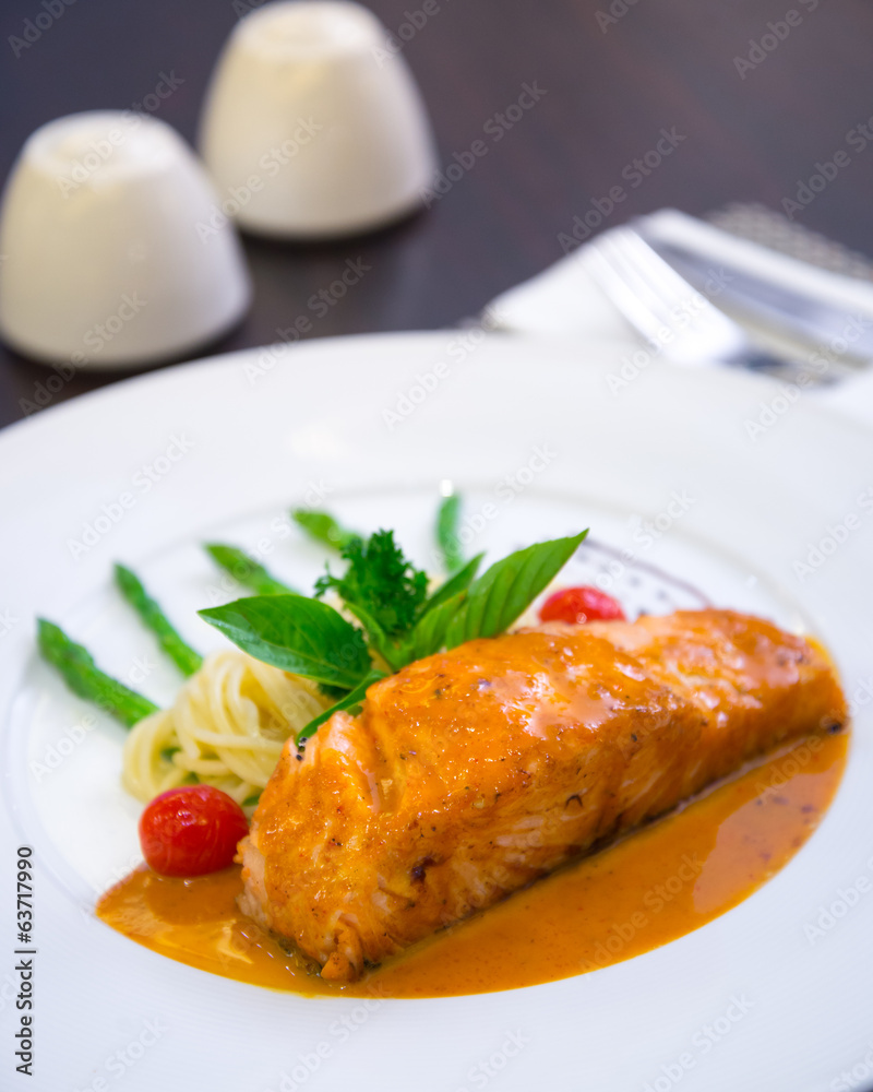 spaghetti grilled salmon