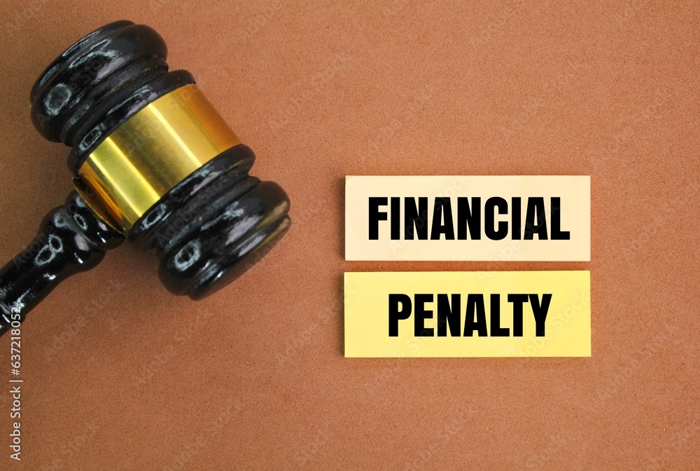 judge's gavel and colored paper with the word FINANCIAL PENALTY. financial tax concept