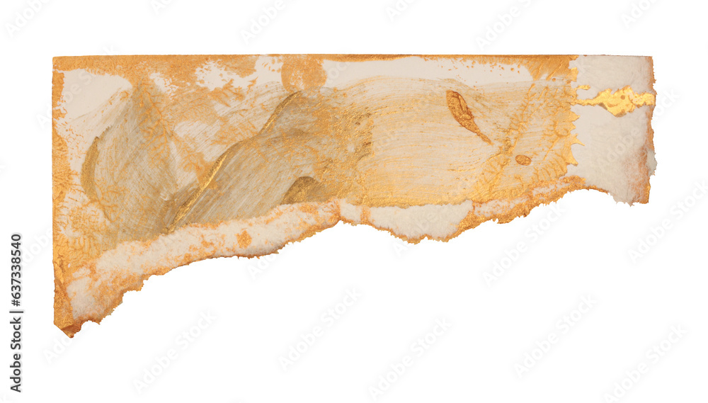 Torn empty old grunge gold pieces texture painting paper isolated on white background.