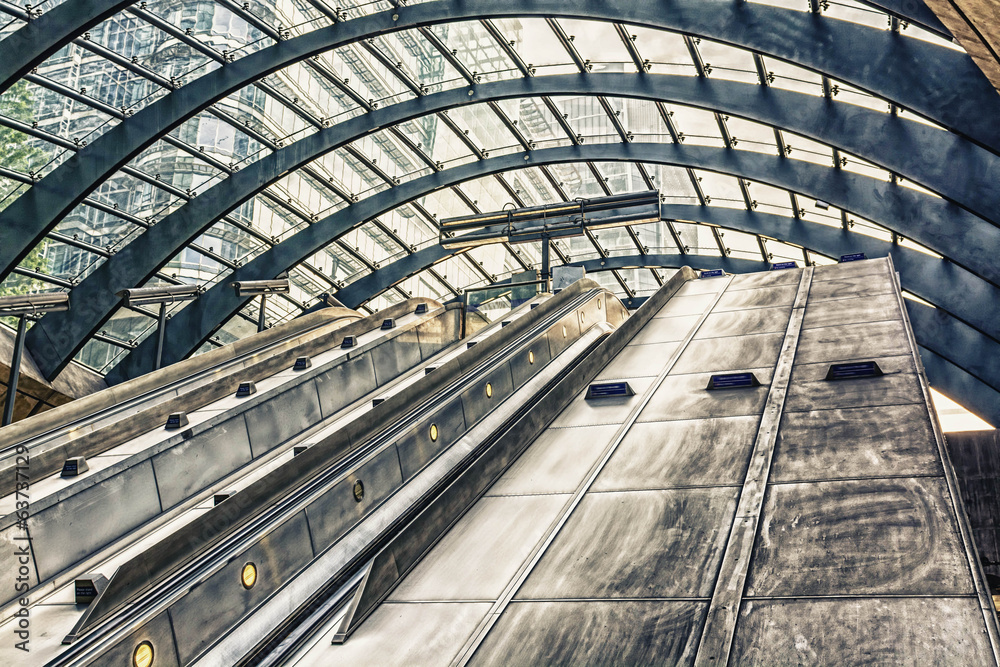 Escalator on Canary Warf Station, London