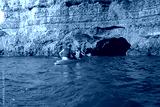 Children, enjoying Benagil, Portugal. Benagil Cave inside Algar de Benagil, famous sea cave in Algarve coast, Lagoa.