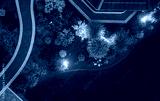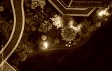 Elegant LED Illuminated Residential Back Yard Garden Aerial View.