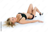 portrait of the blonde with blue eye on white background