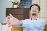 Exhausted freelance businessman is stretching, aiming to relax his back and neck after relentless hours in home office. The persistent ache from overworking reminder of the importance of health care