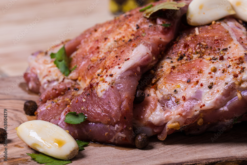 Fresh pork ribs with spices redy for grill