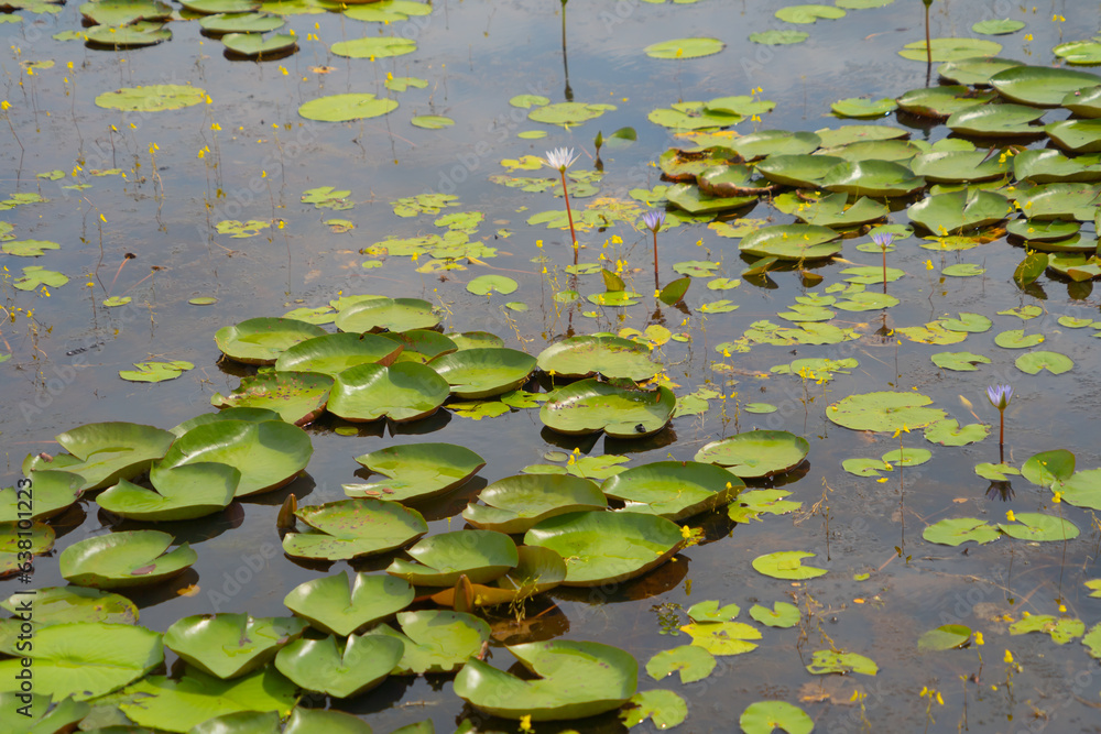 Lotus flowers in pond, sea or lake in national park in Thale Noi, Songkhla, Thailand. Nature landscape background.