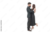 Romantic story. couple in love dancing. love date for man and woman. formal couple of tuxedo dance isolated on white. dance school for everyone. happy valentines day. celebrate special occasion
