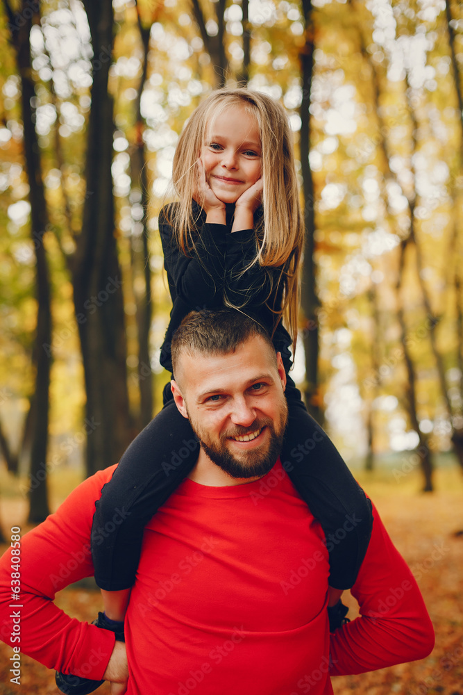 Cute family playing in a autumn park