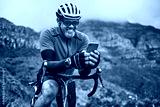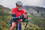 Happy man, cyclist and phone on mountain bicycle in communication, social media or networking in nature. Male person or athlete smile on mobile smartphone app in sports workout, fitness or cycling