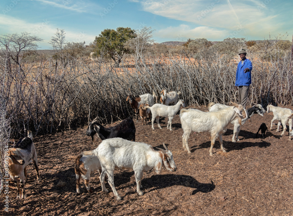 African herdsmen in the village, walking in the kraal to steer the goats
