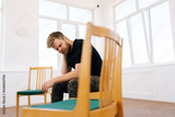 Remote portrait of frustrated young bearded man discussing alcohol addiction at group therapy session. Male making confession in front of support group people at rehabilitation program meeting.