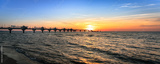 Panoramiczny widok na Morze Bałtyckie i molo w Międzyzdrojach o zachodzie słońca. Polska