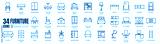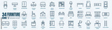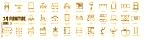 Furniture and home interior elements - thin line web icon set. Outline icons of kitchen, living room, bedroom and office collection. Simple vector illustration.
