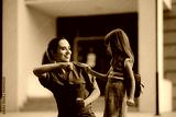 Mother and Daughter Having fun Making Fist Bump Gesture. Happy mom and child on the first day of school celebrating