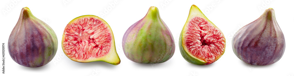 Fig fruits and slice of fig isolated on white background. File contains clipping paths.