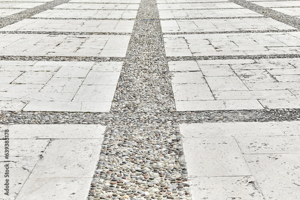 Marble floor with natural stone paving as pattern.